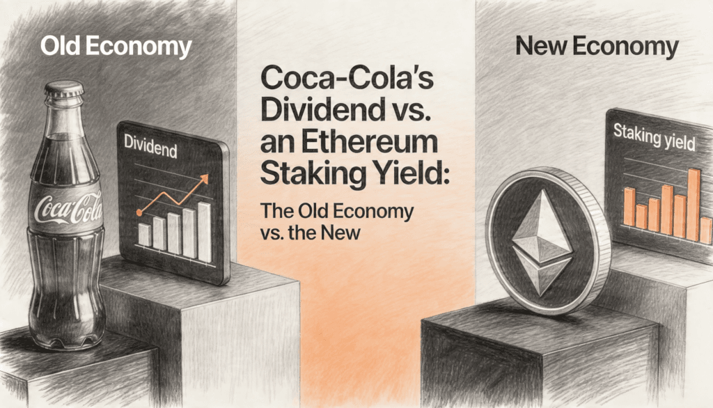 Here is where it gets interesting. Both Coca-Cola dividends and Ethereum staking rewards produce income. Both show up in your account without you lifting a finger. Both can be reinvested. But the philosophical foundations underneath them could not be more different.