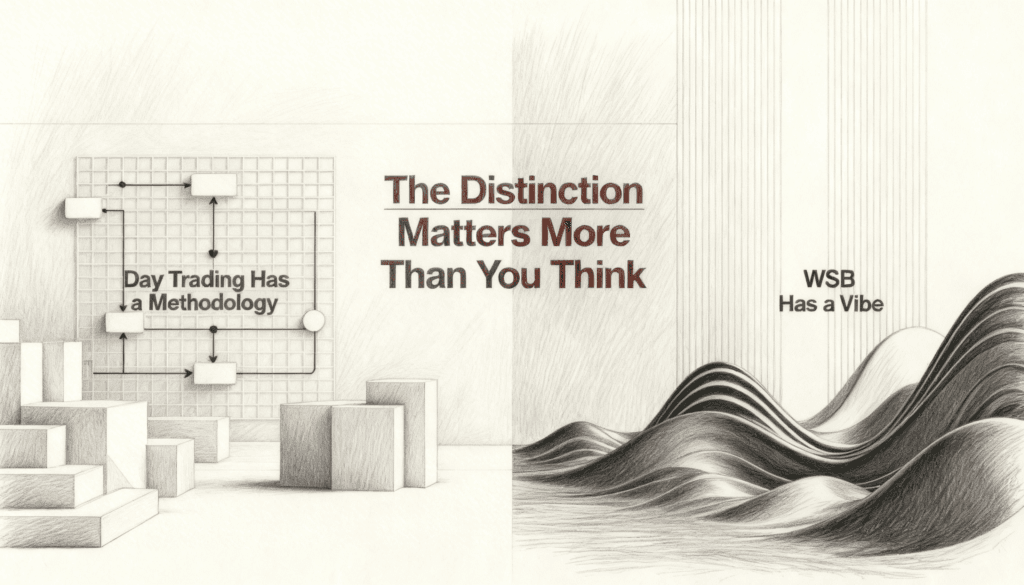 Day trading is a methodology. It has rules, setups, entry criteria, exit criteria, risk limits, and a whole vocabulary that sounds borrowed from a pilot checklist. There are books about it. There are courses. There are mentors who will sell you their system for a suspicious amount of money. The whole thing is dressed up in the language of professionalism, and that is not an accident. The day trader wants you to know, and wants to know themselves, that what they are doing is a discipline.