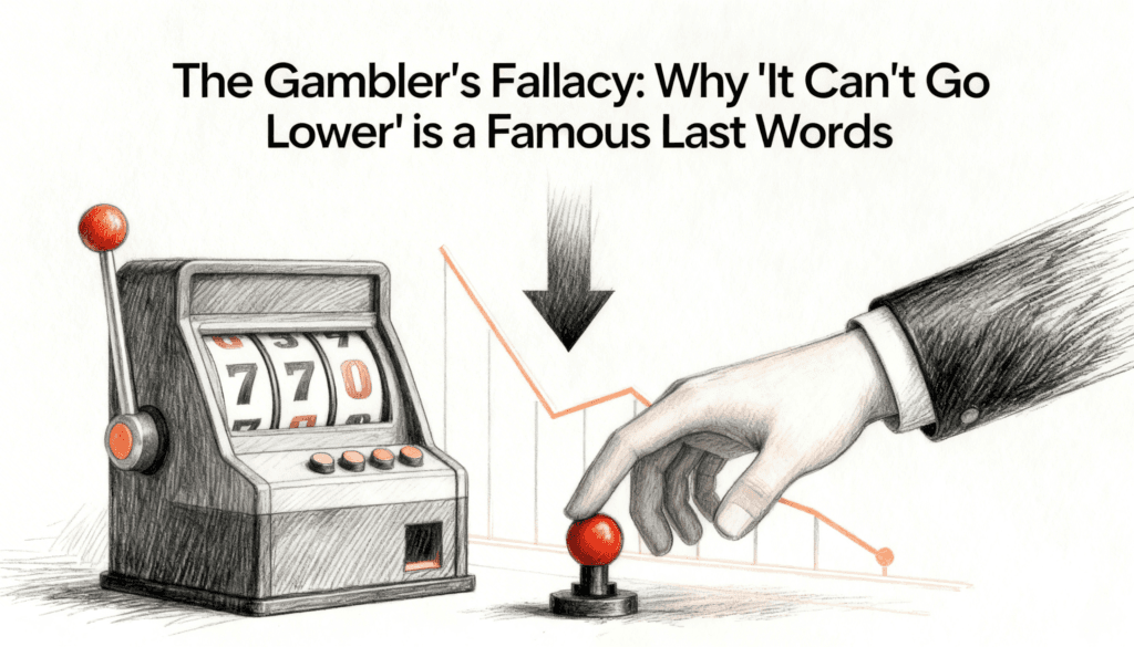 But most people who average down are not doing it because their thesis is intact. They are doing it because admitting the thesis was wrong feels worse than losing more money. The gambler’s fallacy provides the intellectual cover. “It has already fallen so much” becomes the reason to stay, when it should be the reason to leave.