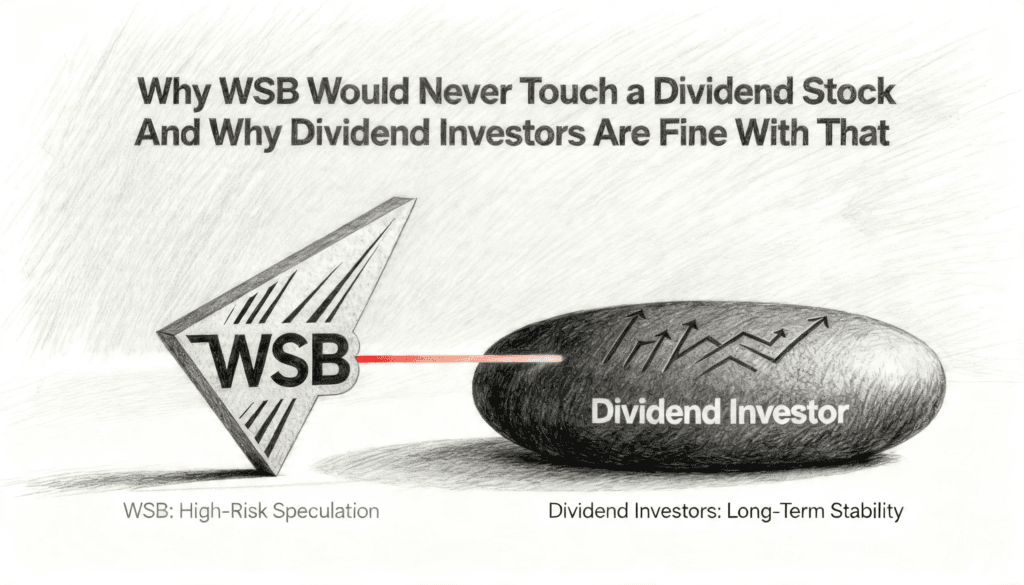 The thing that surprises outsiders is that dividend investors are not offended by WSB. Not really. They might shake their heads at a particularly bad trade, but they do not feel threatened, and they certainly do not feel the need to convert anyone. This is because dividend investing, more than almost any other strategy, is emotionally self sufficient. The whole point is that you do not need external validation. You do not need the market to agree with you. You do not need anyone else to understand what you are doing. The payments arrive whether the internet approves or not.